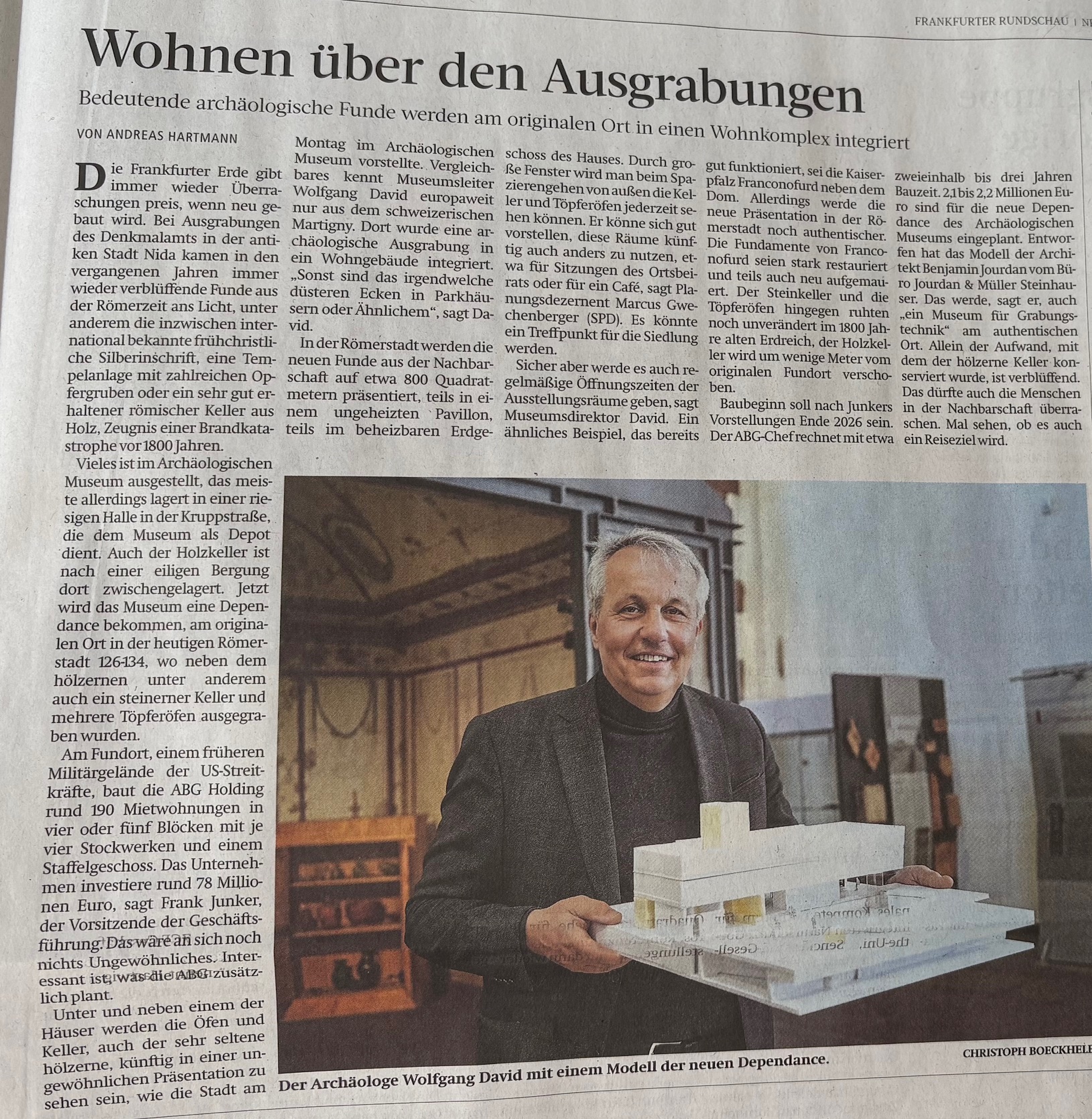 nbei ein Artikel, der am 03. März 2026 in der Frankfurter Rundschau  erschienen ist, daß die bedeutenden archäologischen Funde am originalen Ort in einen Wohnkomplex integriert werden.
